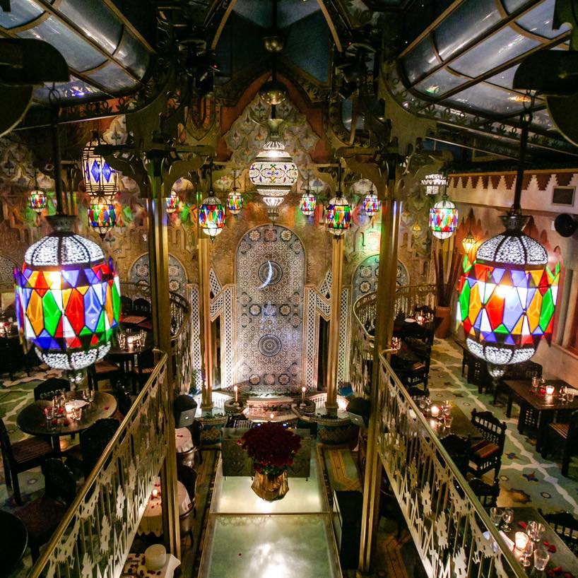 Riad Yacout in Milan is a lavish three-floor Moroccan-themed restaurant where ornate décor, live entertainment and Maghreb-Mediterranean cuisine combine for a dramatic evening experience. Picture Credit: Riad Yacout Official Facebook Page.